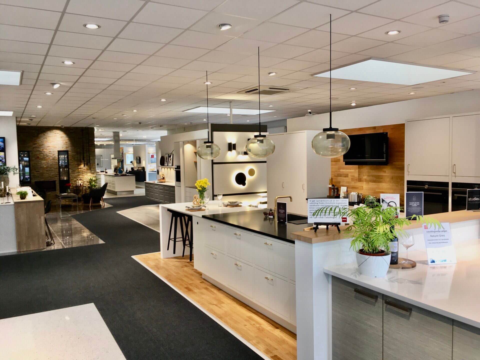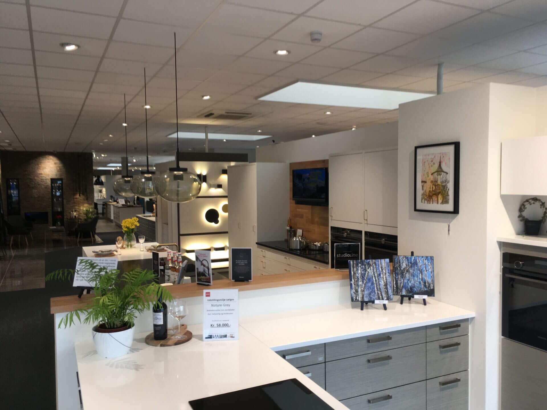 In de showroom van Invita Kitchen zorgt verlichting niet alleen voor verlichting, maar bepaalt ook de sfeer.